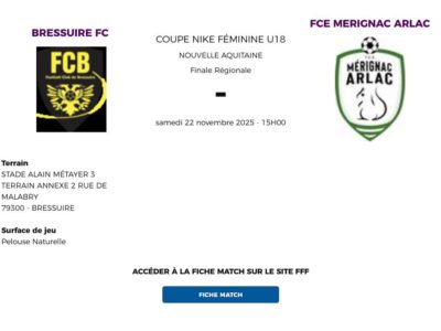 Coupe Nike FFF : Nos Bressuiraises joueront à domicile pour le prochain tour de Coupe face à la belle équipe du FCE Mérignac Arlac actuellement seconde au classement U18 F Elite.Nous comptons sur vous pour venir les encourager ! La réac’ du coach ! »... Plus d'infos !