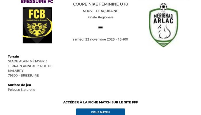 Nos Bressuiraises joueront à domicile pour le prochain tour de Coupe face à la belle équipe du FCE Mérignac Arlac actuellement seconde au classement U18 F Elite.