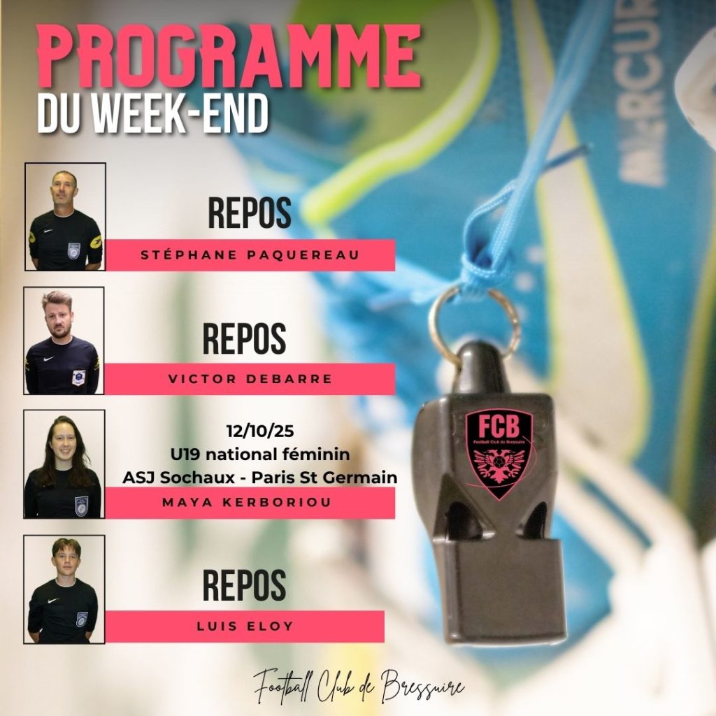 Programme de nos arbitres ce week-end
