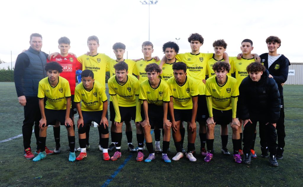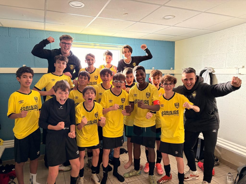 Match important face à Périgny, qui se trouvait juste derrière nous au classement avant le coup d’envoi. Pour cette rencontre, nous avons eu la chance de jouer sur le terrain d’honneur : il fallait donc rendre une belle copie.Après un début de match équilibré entre les deux équipes, nous encaissons un but. Ce but nous a réveillés, et grâce à Ben Mansoib, qui reprend une frappe de Timmy, nous parvenons à revenir au score (1-1). Dans la foulée, nos joueurs insistent, et grâce à un beau rush solitaire de Ryan, nous prenons l’avantage à la 44e minute (2-1). Cependant, à la suite d’une erreur collective, nous encaissons un second but sur coup franc à l’entrée de la surface, juste avant la mi-temps (2-2).En deuxième période, nous devenons de plus en plus dangereux, mais malheureusement, de nombreuses positions de hors-jeu viennent stopper nos actions. À la 55e, Ryan, trouvé en profondeur, adresse un centre parfaitement dosé pour Rayane, qui conclut avec sang-froid (3-2). Enfin, Nino vient achever le match à la 75e minute : parti de son camp, à la limite du hors-jeu, il lobe le gardien d’une frappe lointaine, que ce dernier ne peut qu’effleurer du bout des gants (4-2).Je tiens à féliciter les garçons, de plus en plus impliqués sur les séances. Ils ont de réelles qualités ; à eux d’être exigeants pour continuer à performer le week-end