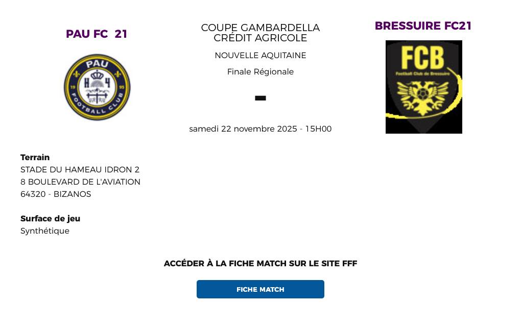 Pau F C est le futur adversaire en GAMBARDELLA.