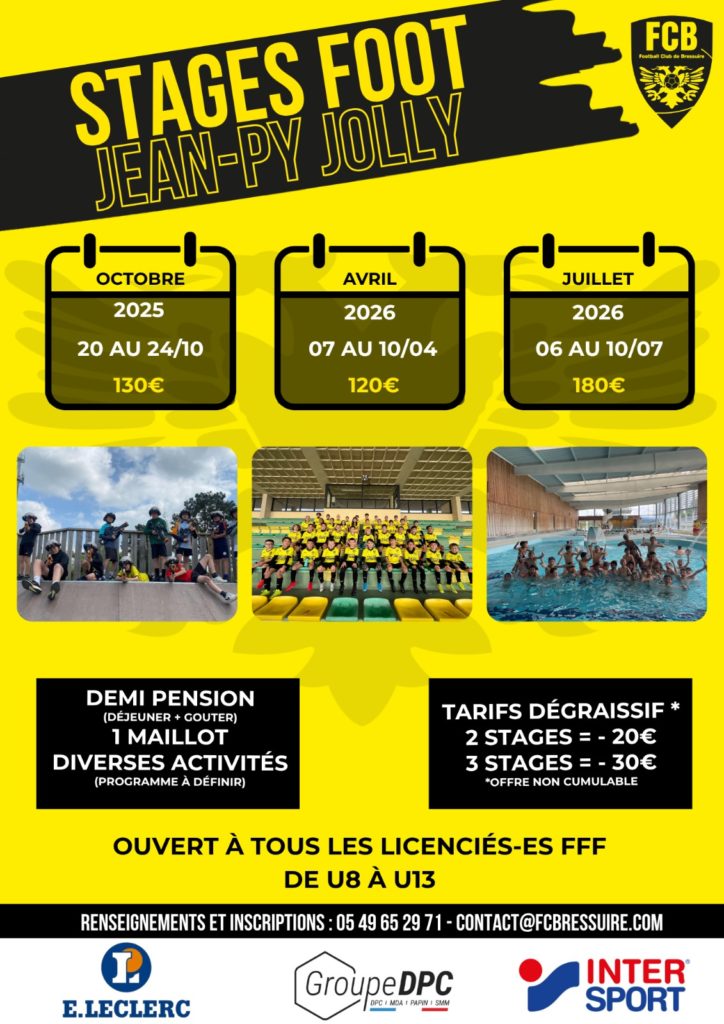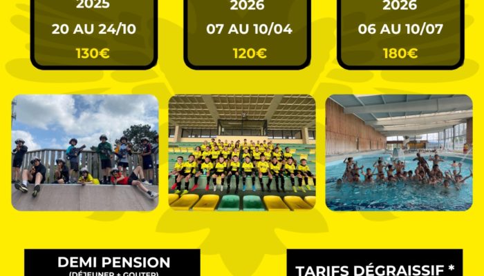 Voici les dates des stages foot qui auront lieu dans l’année !! Changement cette année, les stages durent une semaine complète