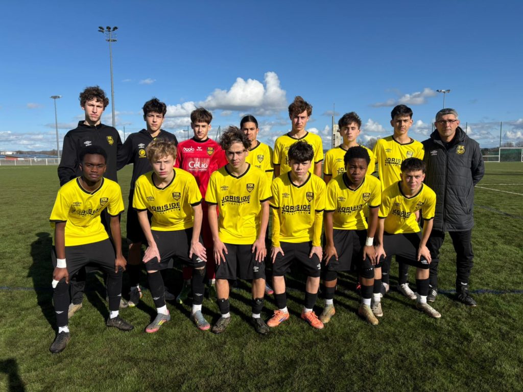 « Il fallait du caractère et de la détermination pour ce long déplacement à Guéret, à l’occasion des huitièmes de finale de la Coupe, et les Jaunes et Noirs ont parfaitement répondu présents. Dans un contexte toujours particulier loin de leurs bases, ils ont su faire preuve de maîtrise et d’efficacité pour décrocher une belle qualification en quart de finale.La rencontre démarre pourtant mal pour nos garçons. Sur une bonne entame des locaux, Guéret ouvre le score à la 16e minute. Touchés mais pas abattus, les Jaunes et Noirs réagissent rapidement et trouvent la faille cinq minutes plus tard pour revenir au score (21e). Cette égalisation libère l’équipe, qui monte en puissance et prend logiquement l’avantage à la 28e minute. À la pause, nous rentrons aux vestiaires avec un avantage mérité (2-1).En seconde période, les Jaunes et Noirs confirment leur supériorité. Plus solides défensivement et plus tranchants offensivement, ils inscrivent deux nouveaux buts, scellant définitivement le sort de la rencontre. Sérieux et appliqués jusqu’au coup de sifflet final, ils s’imposent avec autorité et valident leur qualification pour les quarts de finale de la Coupe, au terme d’une prestation aboutie.Merci aux nombreux parents qui ont effectué ce long déplacement et bravo aux garçons pour cette qualification .